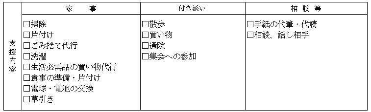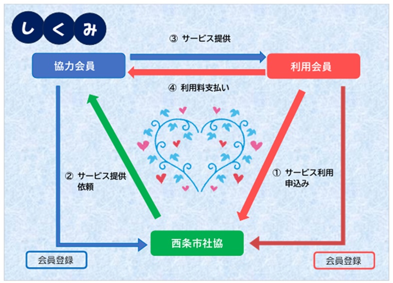 ■利用会員 市内に居住する高齢や、障がい者、父子、母子世帯等で、日常生活を営む上で、生活支援サービスの援助を希望される方。 ■協力会員 市内に居住する18歳から75歳までのものとし、心身ともに健全で、この事業に対する熱意をもって本事業に協力できる方。